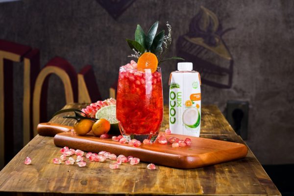 Cocktail dừa nhiệt đới mát lạnh với màu đỏ bắt mắt của siro lựu đỏ...